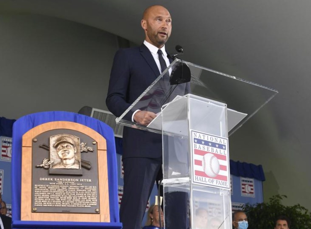 On a Wednesday afternoon that turned cloudy with the temperature in the 70s and a few sprinkles in the air and adoring fans chanting his name, the former New York Yankees star shortstop and captain was inducted into the Baseball Hall of Fame after a long wait necessitated by the pandemic.