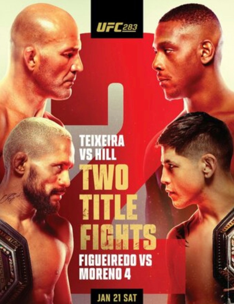 NEW YORK — UFC 283 will be headlined by a fight for the vacant light heavyweight title, as former champion Glover Teixeira takes on streaking contender Jamahal Hill on Saturday night, January 21 from Rio de Janeiro.