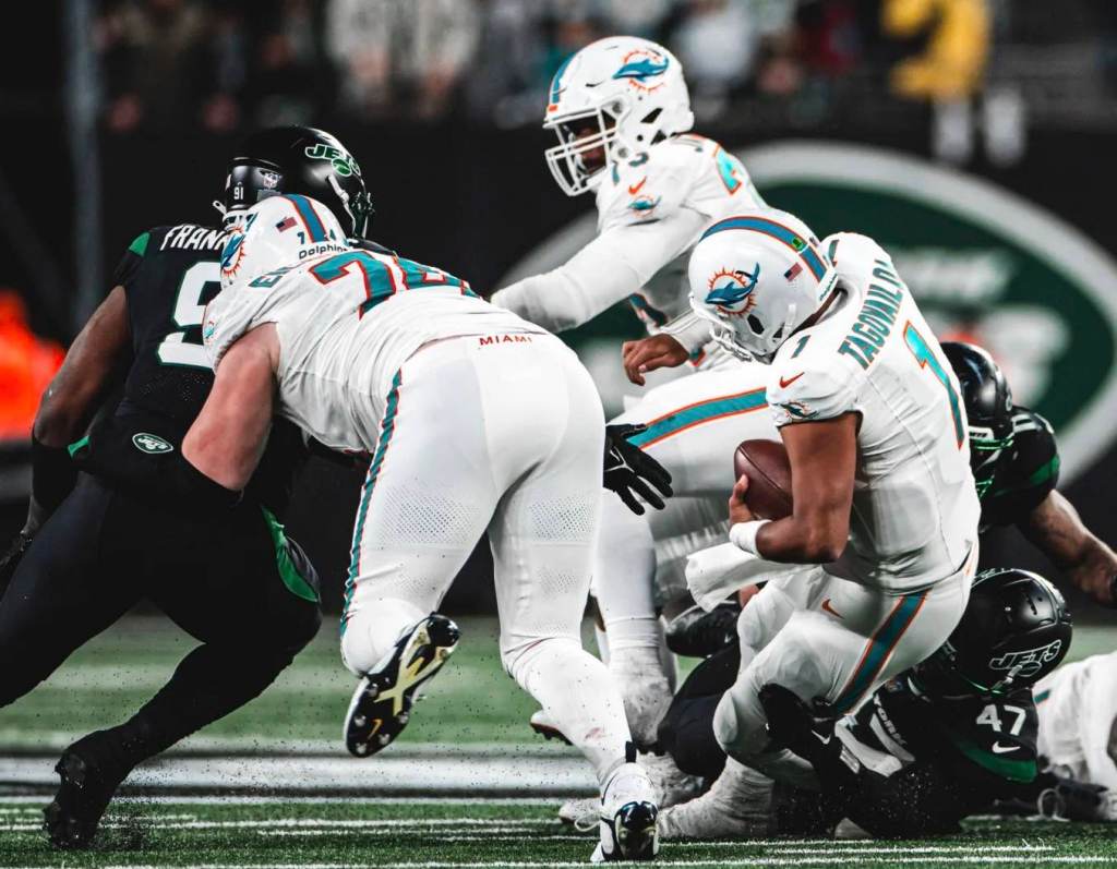 In the New York Jets’ 11th game of the 2023 NFL season, in East Rutherford, New Jersey, on a cool and sunny afternoon, the Jets were blown out by the Miami Dolphins, 34 – 13.