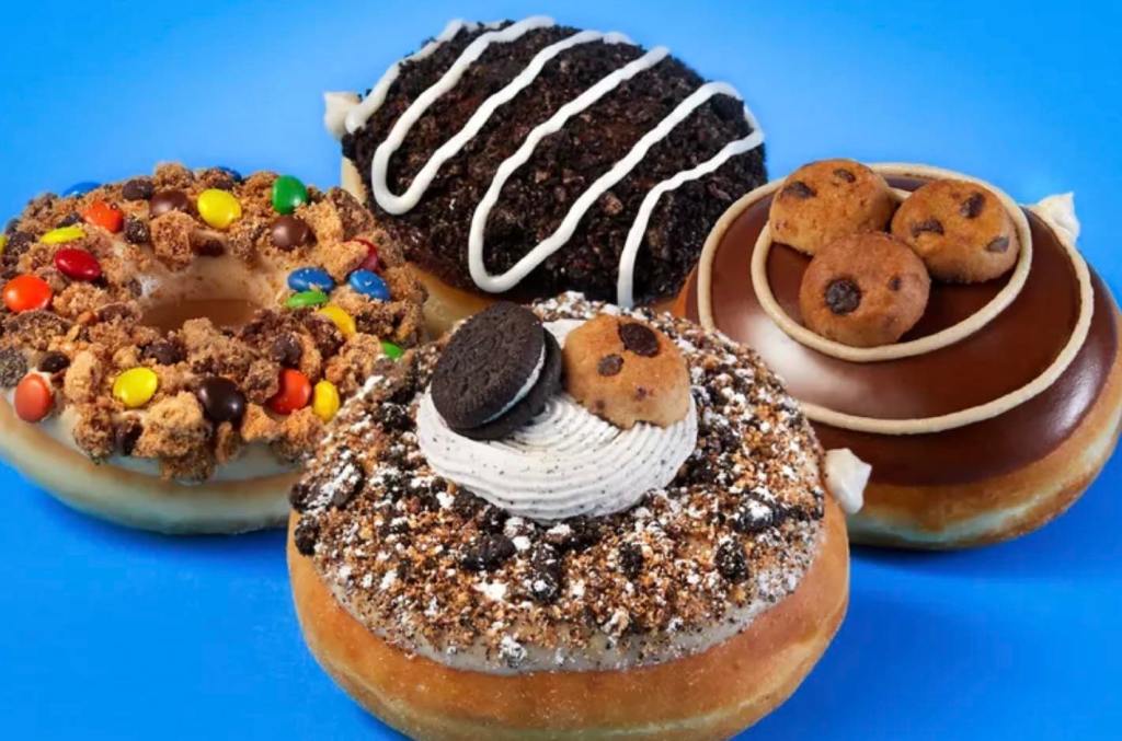 • New Buddy Makes Breakfast Doughnut: Original Glazed Doughnut topped with cake batter spaghetti buttercreme, milk chocolate colorful candies, sprinkles, and a maple drizzle.