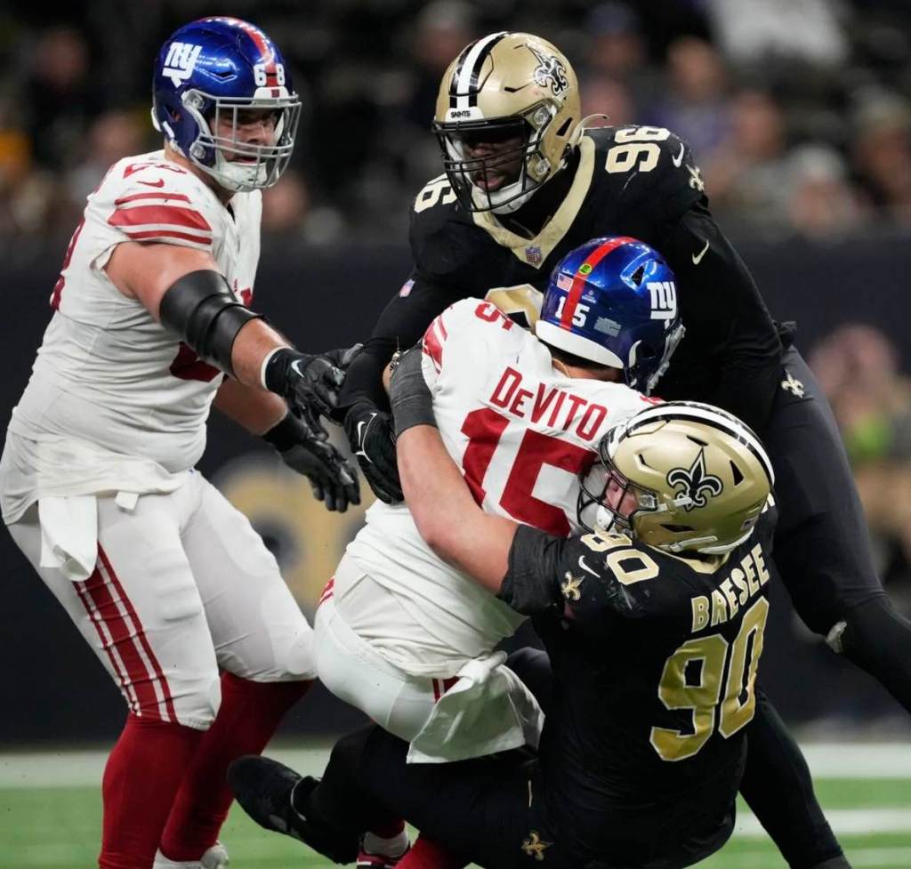 One week after the Giants did not allow any sacks for the first time this season, quarterback Tommy DeVito was sacked seven times and hit on nine other dropbacks.