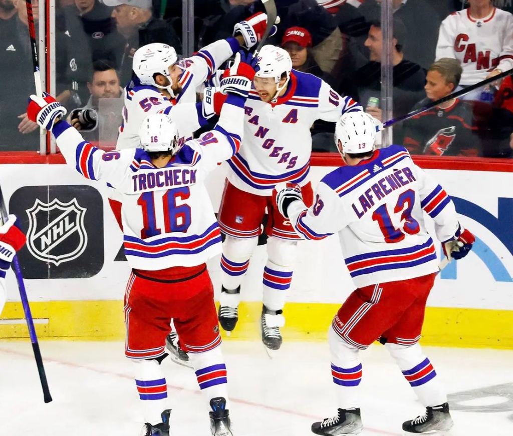 The Rangers picked up another dramatic win over the Hurricanes in the second round of the playoffs for their seventh consecutive victory and are now 7-0 in the postseason, a feat they hadn’t accomplished since their last run to the Stanley Cup three decades ago.