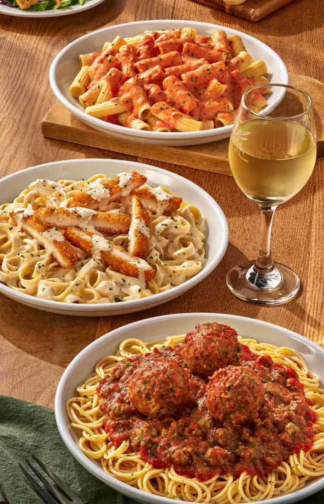Customers can enjoy a selection of various pastas, sauces and proteins that add up to 80 different pasta-bilities of combinations — and include unlimited soup or salad and Olive Garden’s famed breadsticks.
