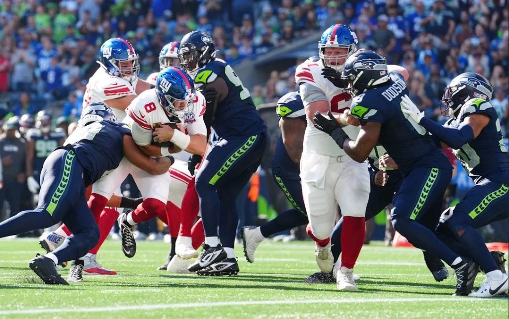 Isaiah Simmons sealed the win when he jumped over the line of scrimmage and blocked a potential game-tying field goal, which Bryce Ford-Wheaton returned 60 yards for a touchdown with 55 seconds left in regulation. The Giants improved to 2-3 on the season while the Seahawks fell to 3-2 after consecutive losses.