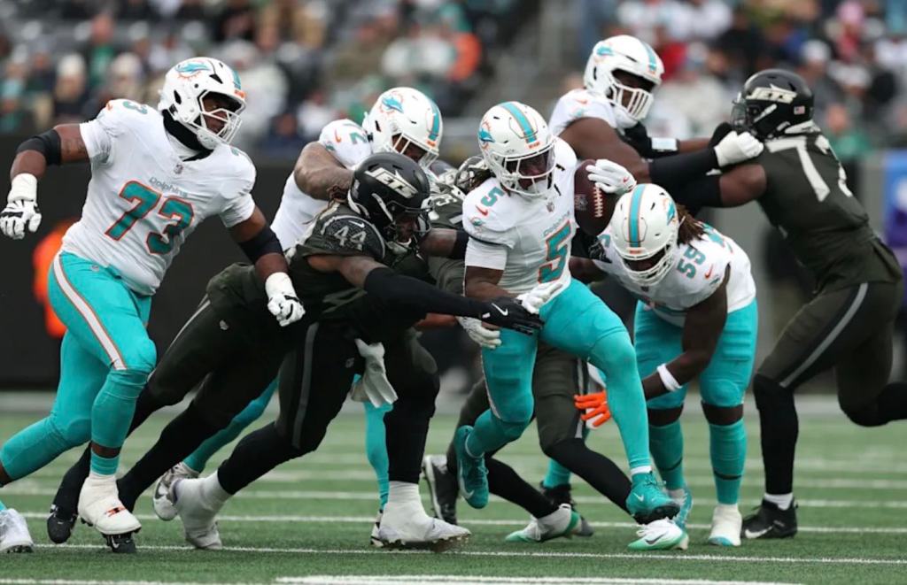 EAST RUTHERFORD, N.J. – The Miami Dolphins have won four consecutive games after a 34-10 victory over the hapless New York Jets.